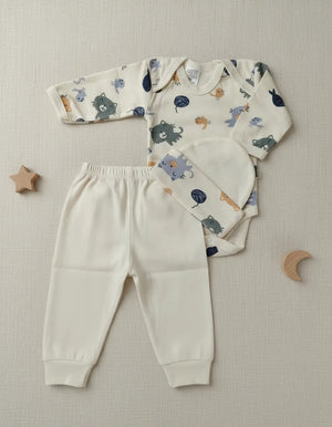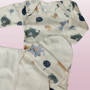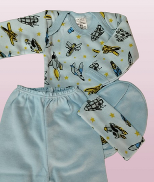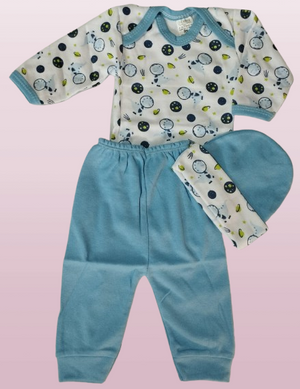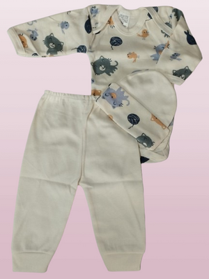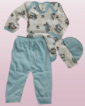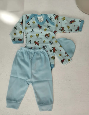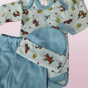 Conjunto de bebe RN, 3 peças modelos estampado manga longa.