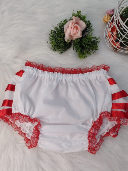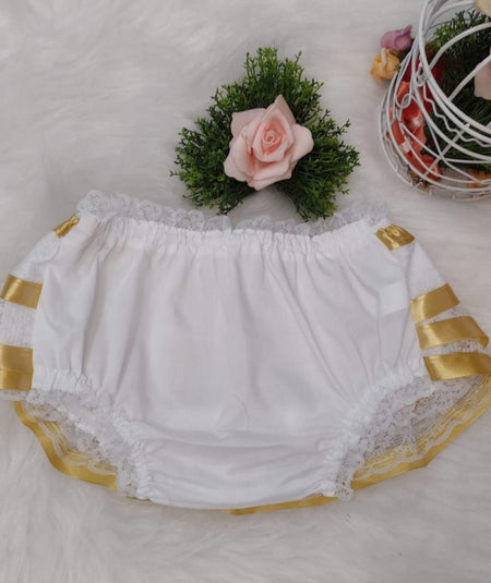 Calcinha Tecido em tricoline, renda e fitas de cetim