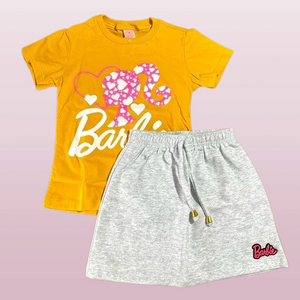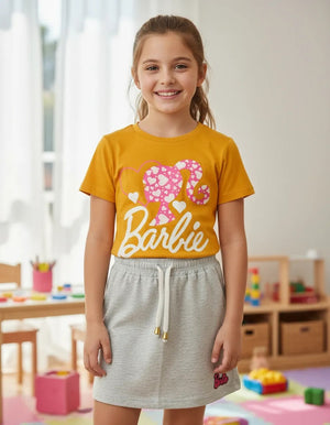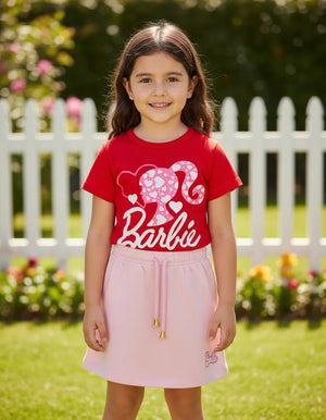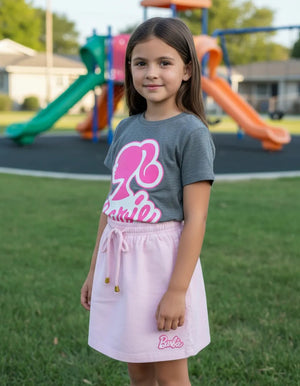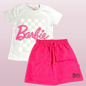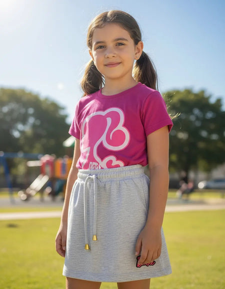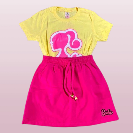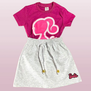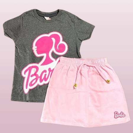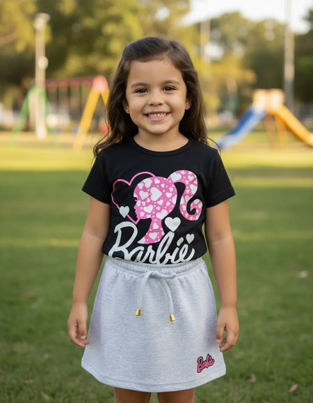 Conjunto Barbie T-Shirts Algodão + saia Moletom