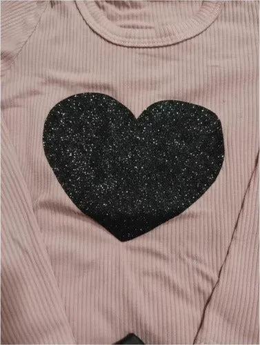 Conjunto Infantil Menina Blusa Manga Longa Saia Couro Fake