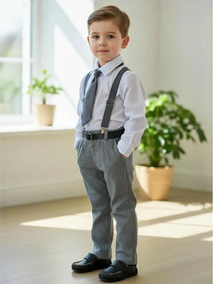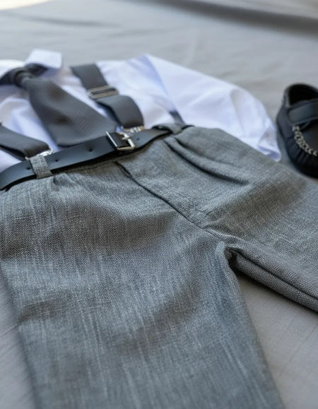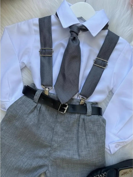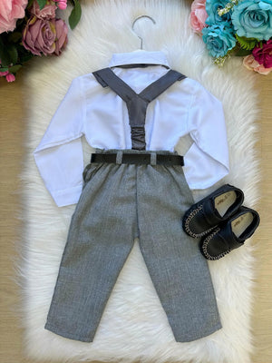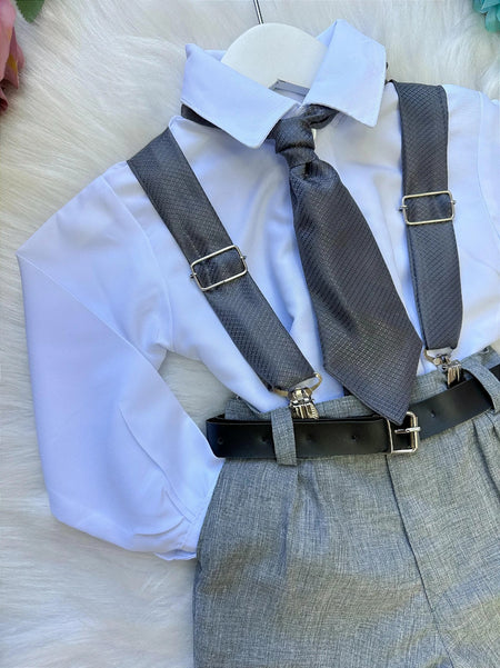 Conjunto Meninos Miss Cherry Rafael Suspensorio Cinza