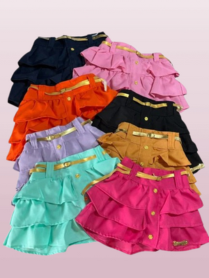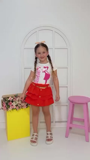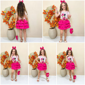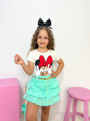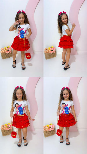 Conjunto Saia 3 Babados + Camiseta (estampa da camiseta aleatoria)