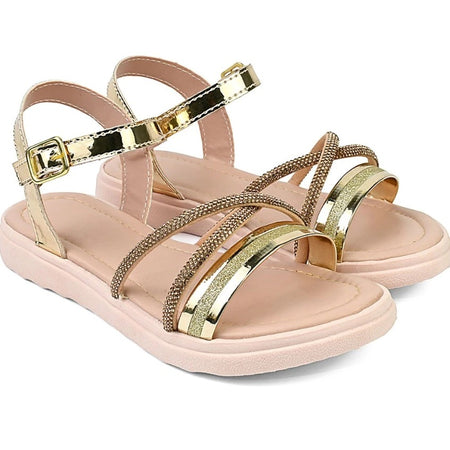 Sandália Infantil Menina Laço Gliter Brilho Strass Tratorada