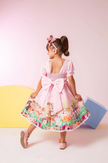 Confeccionado em tecido misto possui forro em poliéster e algodão para não incomodar a criança e proporcionando um caimento incrível e sofisticado, possui gola redonda, comprimento médio, mangas curtas, possui elástico nas costas para melhor ajuste, acabamento com lindo laço na parte posterior do vestido completa o look dos sonhos!