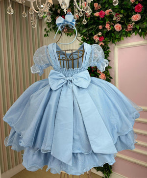 Confeccionado em tecido misto possui forro em poliéster e algodão para não incomodar a criança e proporcionando um caimento incrível e sofisticado, possui gola redonda, comprimento médio, mangas curtas, possui elástico nas costas para melhor ajuste, acabamento com lindo laço na parte posterior do vestido completa o look dos sonhos!