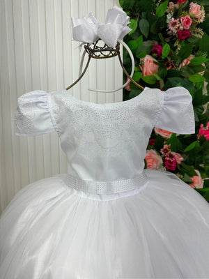 Disponível em tamanhos para crianças, o vestido é projetado para garantir que cada menina se sinta especial e confiante. A paleta de cores brancas é atemporal, permitindo que o vestido se destaque em qualquer cerimônia. Escolha o Vestido Dama De Honra Branco Longo De Luxo Cinto Em Pérola e faça parte de momentos inesquecíveis.