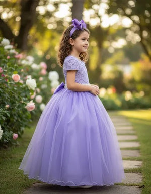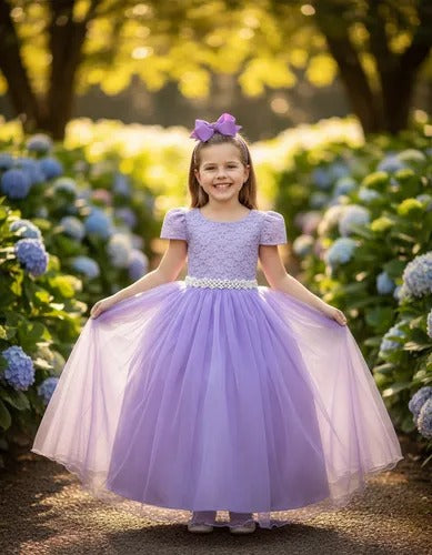 Confeccionado em tecido misto possui forro em poliéster e algodão para não incomodar a criança e proporcionando um caimento incrível e sofisticado, possui gola redonda, comprimento médio, mangas curtas, contém, também, elástico nas costas para melhor ajuste, acabamento com lindo laço na parte posterior do vestido completa o look dos sonhos!