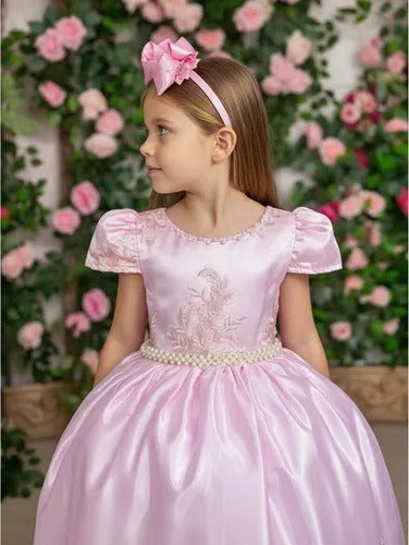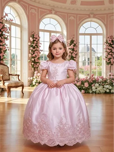 Confeccionado em tecido misto possui forro em poliéster e algodão para não incomodar a criança e proporcionando um caimento incrível e sofisticado, possui gola redonda, comprimento médio, mangas curtas, contém, também, elástico nas costas para melhor ajuste, acabamento com lindo laço na parte posterior do vestido completa o look dos sonhos!