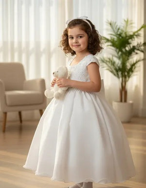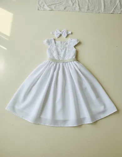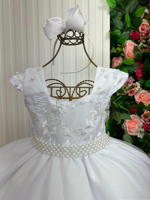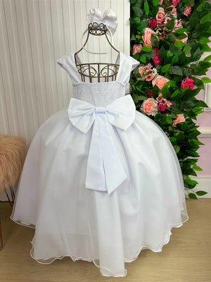 Confeccionado em tecido misto possui forro em poliéster e algodão para não incomodar a criança e proporcionando um caimento incrível e sofisticado, possui gola redonda, comprimento médio, mangas curtas, possui elástico nas costas para melhor ajuste, e acabamento com lindo laço na parte posterior do vestido completa o look dos sonhos!