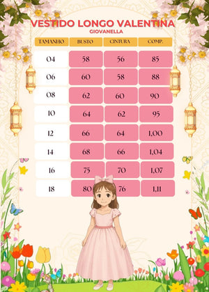 Encante a todos com este vestido deslumbrante, desenvolvido especialmente para momentos inesquecíveis. Seja para uma daminha de honra, formatura, aniversário temático ou festas de gala, este modelo é a escolha perfeita para quem busca sofisticação e um visual digno de realeza.
