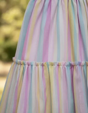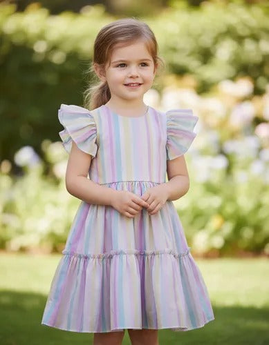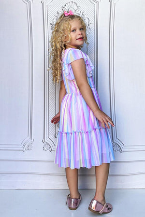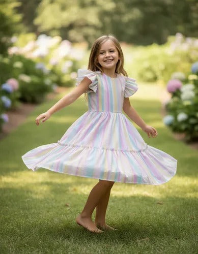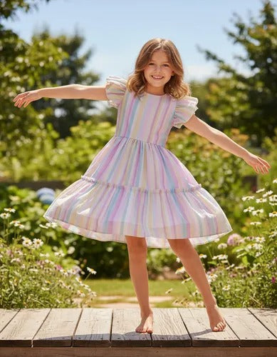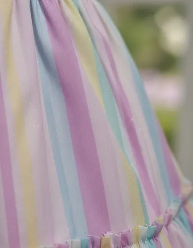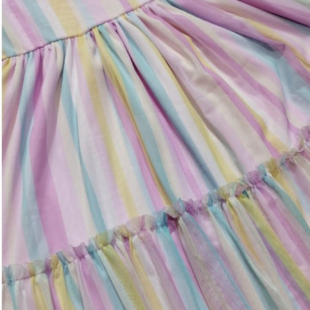 Vestido Infantil Arco Ires Tule Estampado Com Listra