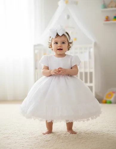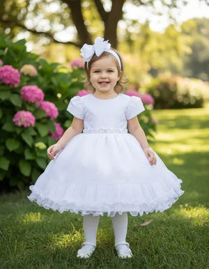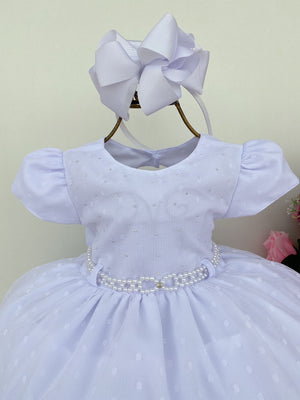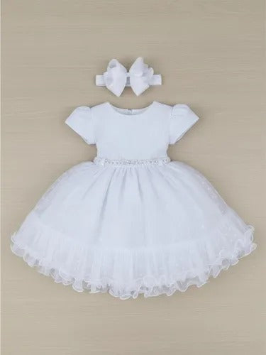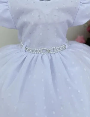 Vestido Marie Batizado Aplicaçao e Cinto De Perolas