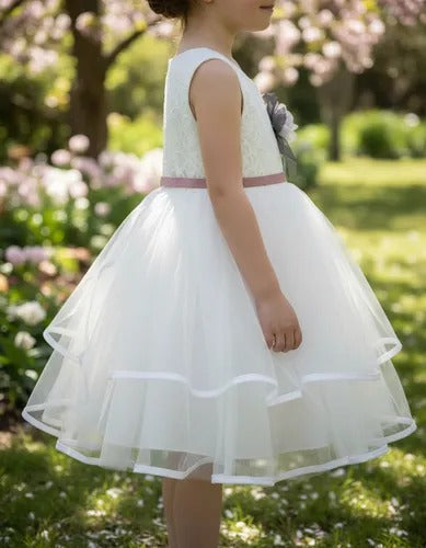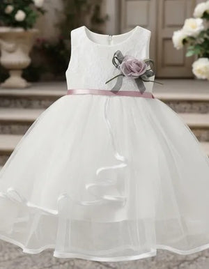 Confeccionado em tecido misto possui forro em poliéster e algodão para não incomodar a criança e proporcionando um caimento incrível e sofisticado, possui gola redonda, comprimento médio, mangas curtas, contém, também, ziper nas costas para melhor ajuste, acabamento impecavel na parte posterior do vestido completa o look dos sonhos!