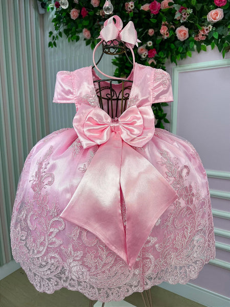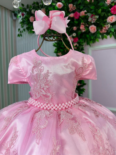 Vestido Infantil Enjoy Bebê Rosa Bebê Realeza Rendado