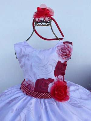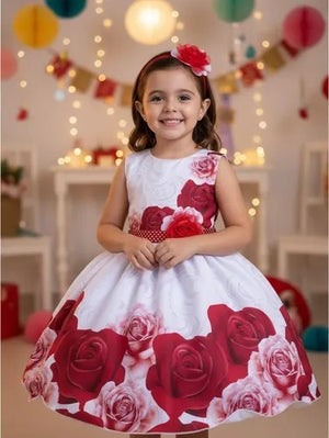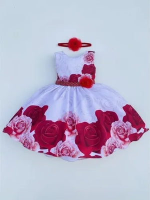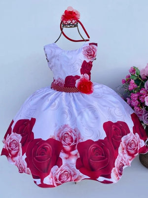 Vestido Juvenil Miss Cherry Florido Com Tiara