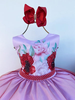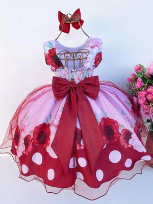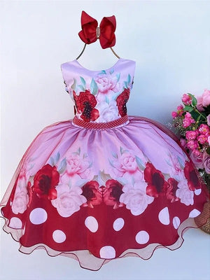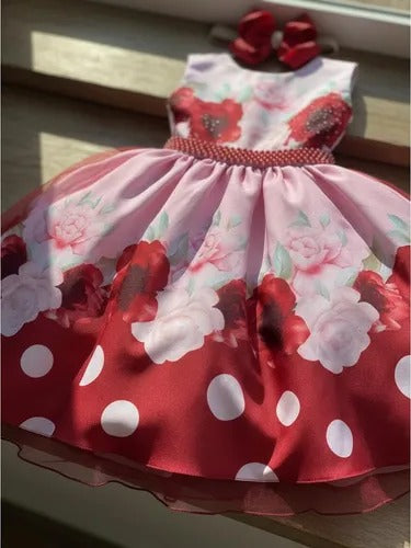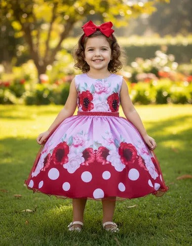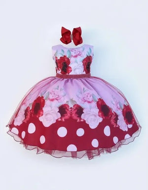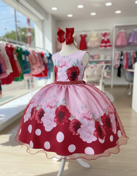 Vestido Infantil Miss Cherry Floral Médio + Laço