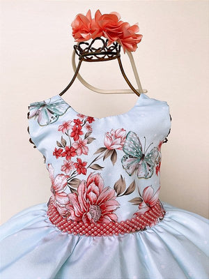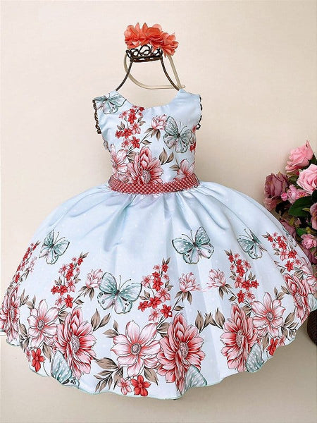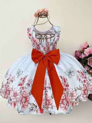 Vestido Infantil Estampado Floral Miss Cherry + Tiara