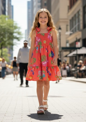 Perfeito para os dias de sol e diversão! Este vestido traz a alegria da primavera e do verão com uma estampa exclusiva e detalhes super femininos. Ideal para passeios, viagens, praia ou festinhas casuais.