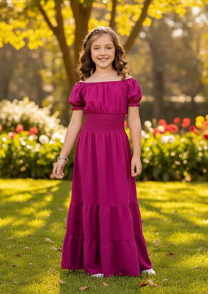 Este vestido longo combina a beleza clássica do Fúcsia com um design moderno e leve, perfeito para qualquer ocasião! É a escolha ideal para Ensaios Fotográficos, Festas Temáticas (Junina, Country), Aniversários, ou um look casual chic de verão/primavera.