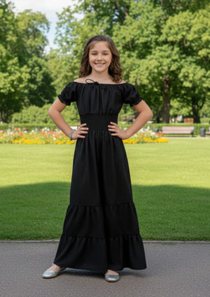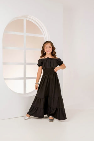 Este vestido longo combina a beleza clássica do preto com um design moderno e leve, perfeito para qualquer ocasião! É a escolha ideal para Ensaios Fotográficos, Festas Temáticas (Junina, Country), Aniversários, ou um look casual chic de verão/primavera.