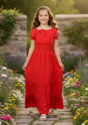 Este vestido longo combina a beleza clássica do vermelho com um design moderno e leve, perfeito para qualquer ocasião! É a escolha ideal para Ensaios Fotográficos, Festas Temáticas (Junina, Country), Aniversários, ou um look casual chic de verão/primavera.