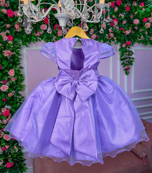 Confeccionado em tecido misto possui forro em poliéster e algodão para não incomodar a criança e proporcionando um caimento incrível e sofisticado, possui gola redonda, comprimento médio, mangas curtas, possui elástico nas costas para melhor ajuste, acabamento com lindo laço na parte posterior do vestido completa o look dos sonhos!