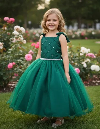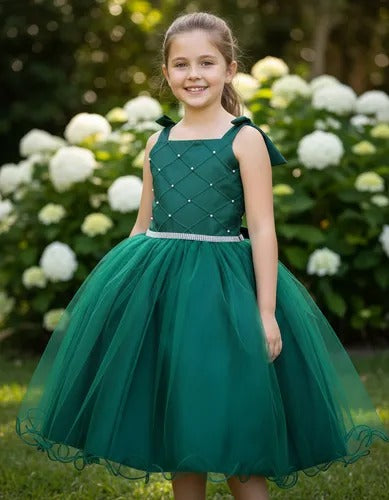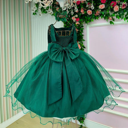 Confeccionado em tecido misto possui forro em poliéster e algodão para não incomodar a criança e proporcionando um caimento incrível e sofisticado, possui gola redonda, comprimento médio, mangas curtas, possui elástico nas costas para melhor ajuste, acabamento com lindo laço na parte posterior do vestido completa o look dos sonhos!
