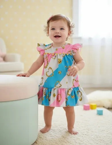 Vestido trapésio estampado para bebê