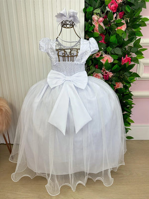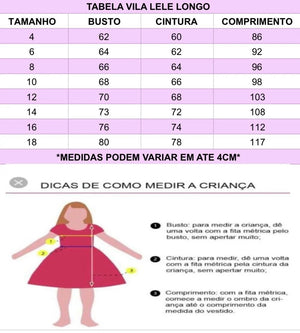 Confeccionado em tecido misto possui forro em poliéster e algodão para não incomodar a criança e proporcionando um caimento incrível e sofisticado, possui gola redonda, comprimento médio, mangas curtas, possui elástico nas costas para melhor ajuste, acabamento com lindo laço na parte posterior do vestido completa o look dos sonhos!