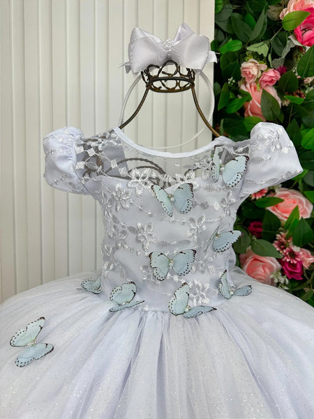 Vestido Vila Lele Longo Jardim Encantado Borboletas Branco