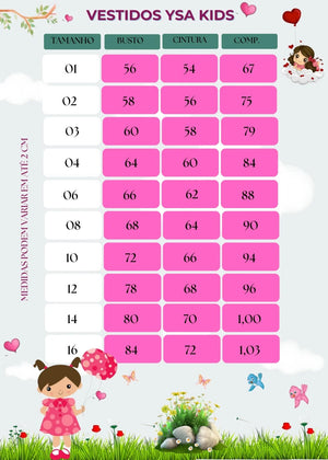 Confeccionado em tecido misto possui forro em poliéster e algodão para não incomodar a criança e conforto um caimento incrível e sofisticado, possui gola redonda, comprimento médio, mangas curtas, contém, também, elástico nas costas para melhor ajuste, acabamento com lindo laço na parte posterior do vestido completo o look dos sonho
