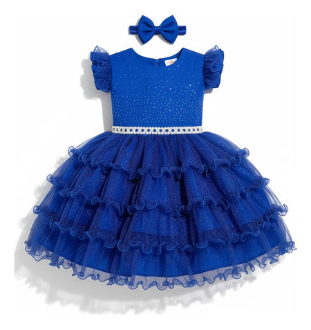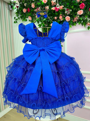 Confeccionado em tecido misto possui forro em poliéster e algodão para não incomodar a criança e proporcionando um caimento incrível e sofisticado, possui gola redonda, comprimento médio, mangas curtas, contém, também, elástico nas costas para melhor ajuste, acabamento com lindo laço na parte posterior do vestido completa o look dos sonhos!
