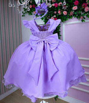 Confeccionado em tecido misto possui forro em poliéster e algodão para não incomodar a criança e proporcionando um caimento incrível e sofisticado, possui gola redonda, comprimento médio, mangas curtas, contém, também, elástico nas costas para melhor ajuste, acabamento com lindo laço na parte posterior do vestido completa o look dos sonhos!