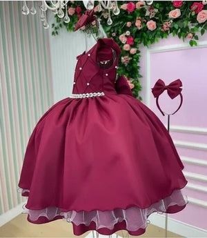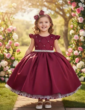 Confeccionado em tecido misto possui forro em poliéster e algodão para não incomodar a criança e proporcionando um caimento incrível e sofisticado, possui gola redonda, comprimento médio, mangas curtas, contém, também, elástico nas costas para melhor ajuste, acabamento com lindo laço na parte posterior do vestido completa o look dos sonhos!