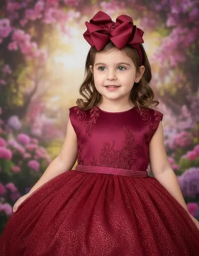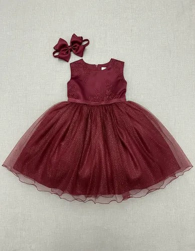 Confeccionado em tecido misto possui forro em poliéster e algodão para não incomodar a criança e proporcionando um caimento incrível e sofisticado, possui gola redonda, comprimento médio, mangas curtas, possui elástico nas costas para melhor ajuste, acabamento com lindo laço na parte posterior do vestido completa o look dos sonhos!